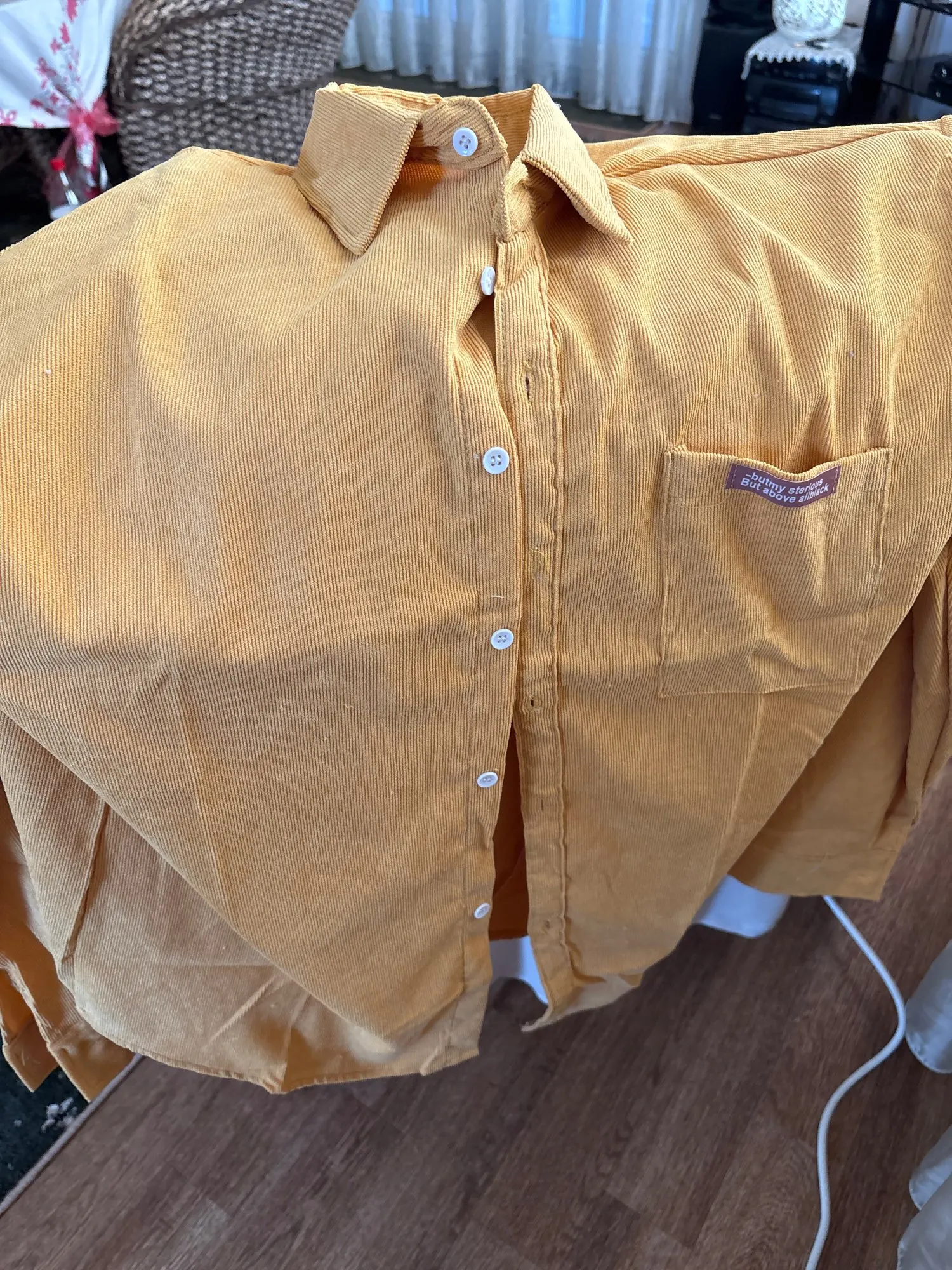 Retro Long Sleeve Corduroy Men's Loose Fit Pointed Collar Outerwear