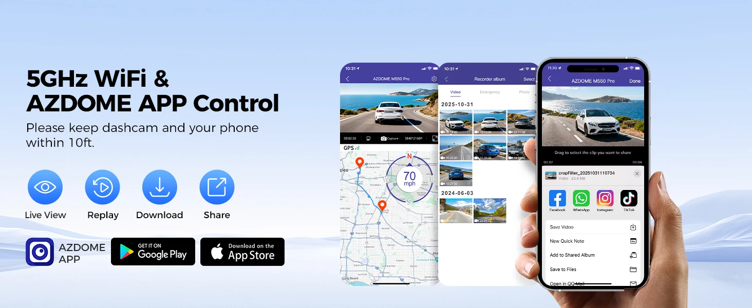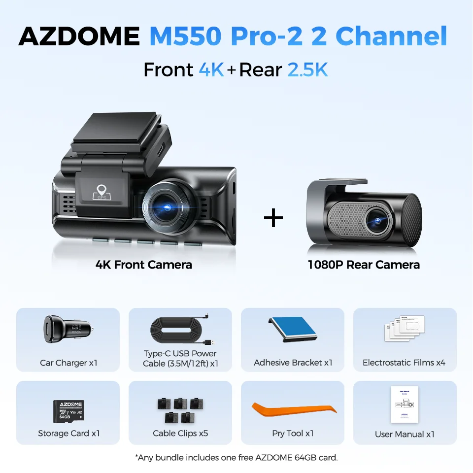 AZDOME M550 Pro 3-Channel 4K Dash Cam with GPS & 5.8GHz Wi-Fi Night Vision