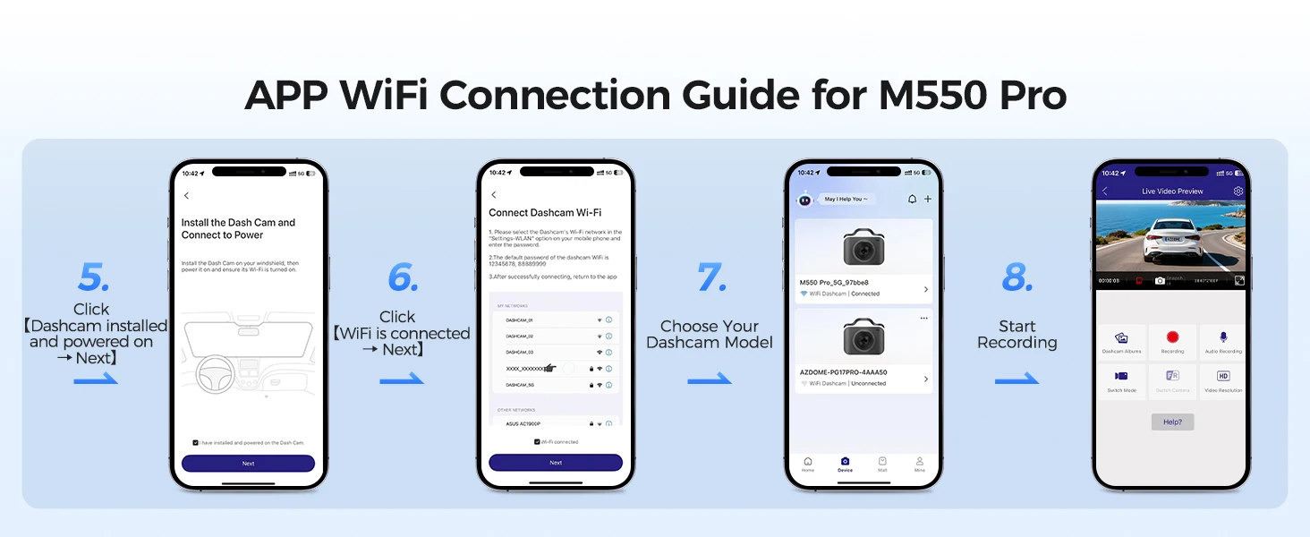 AZDOME M550 Pro dash cam new design with UHD 4K Record 5.8Ghz WiFi and GPS Tracking.