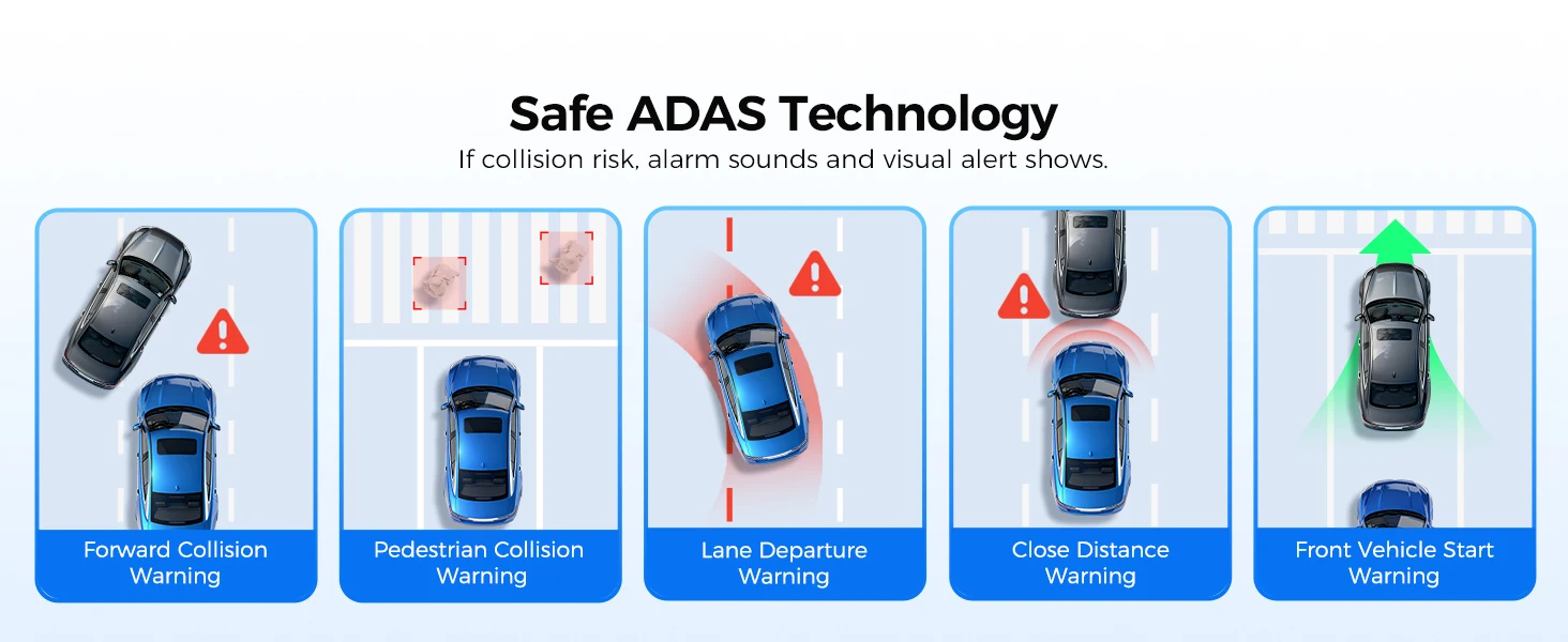 Features: G‑Sensor, Motion Detection, Loop Recording, Parking Mode, ADAS, Speed/Coordinate Logging