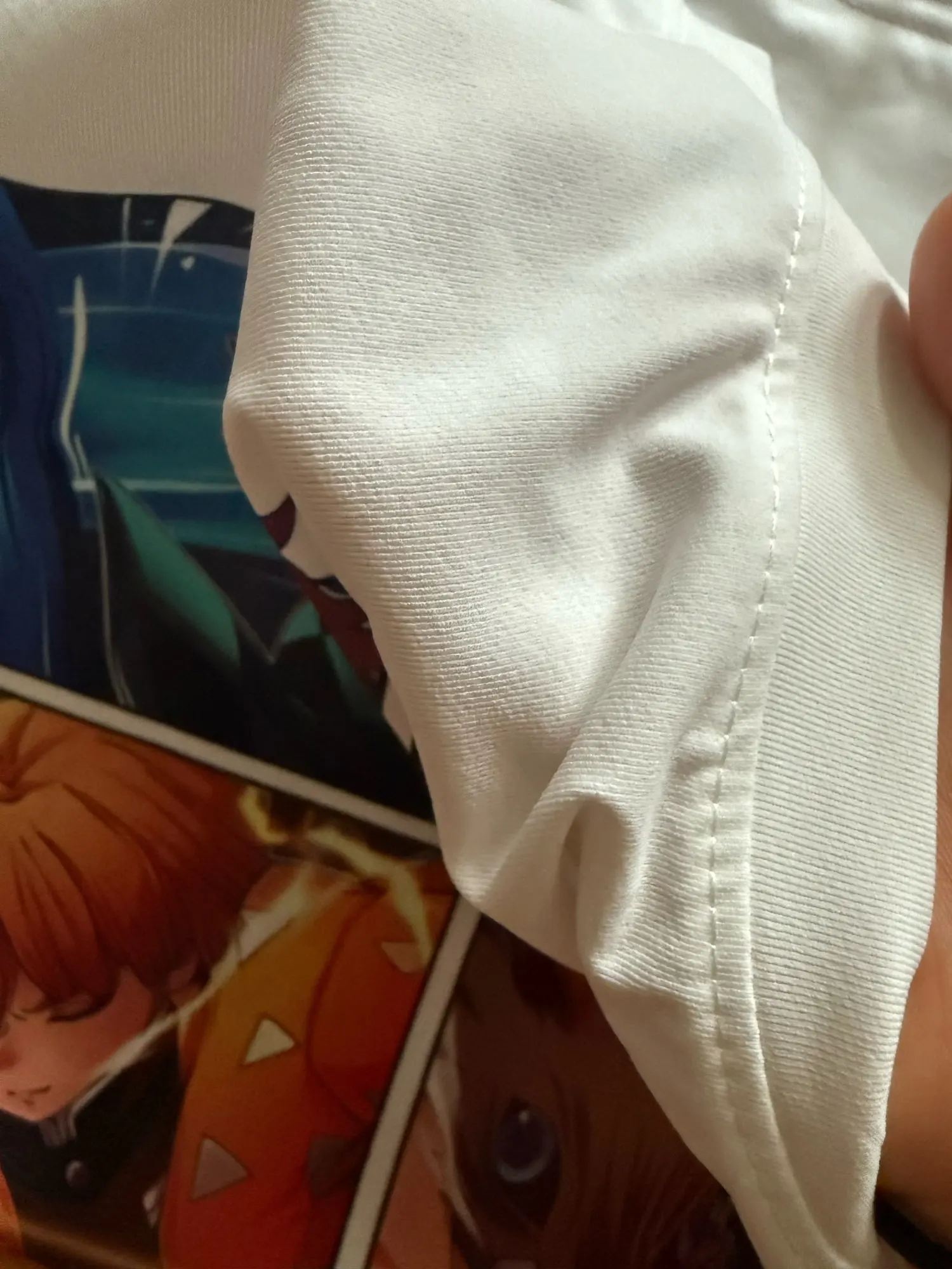 Good thick T-shirt. Not see-through, smooth. Doesn't look like pure cotton but will hold its shape. The design is nice but it's not a sticker, I don't know how much it will fade when washed. Overall, for this price I'm satisfied with the quality. The only thing is I should have taken a size larger, the size chart in the description is still not correct. XXL would have been more suitable.