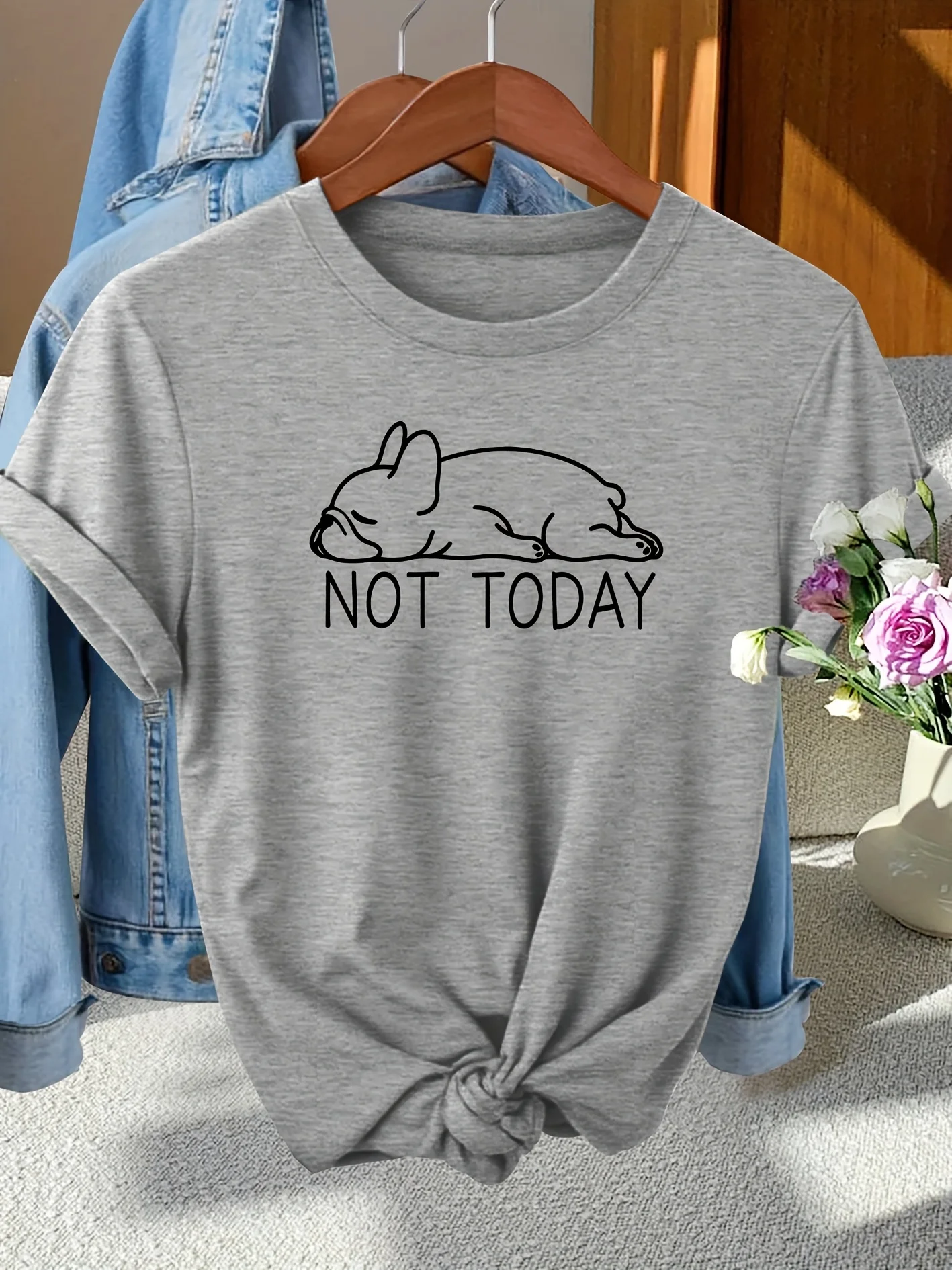 Women’s French Bulldog Graphic T-Shirt, Harajuku Short Sleeve Casual Streetwear Top