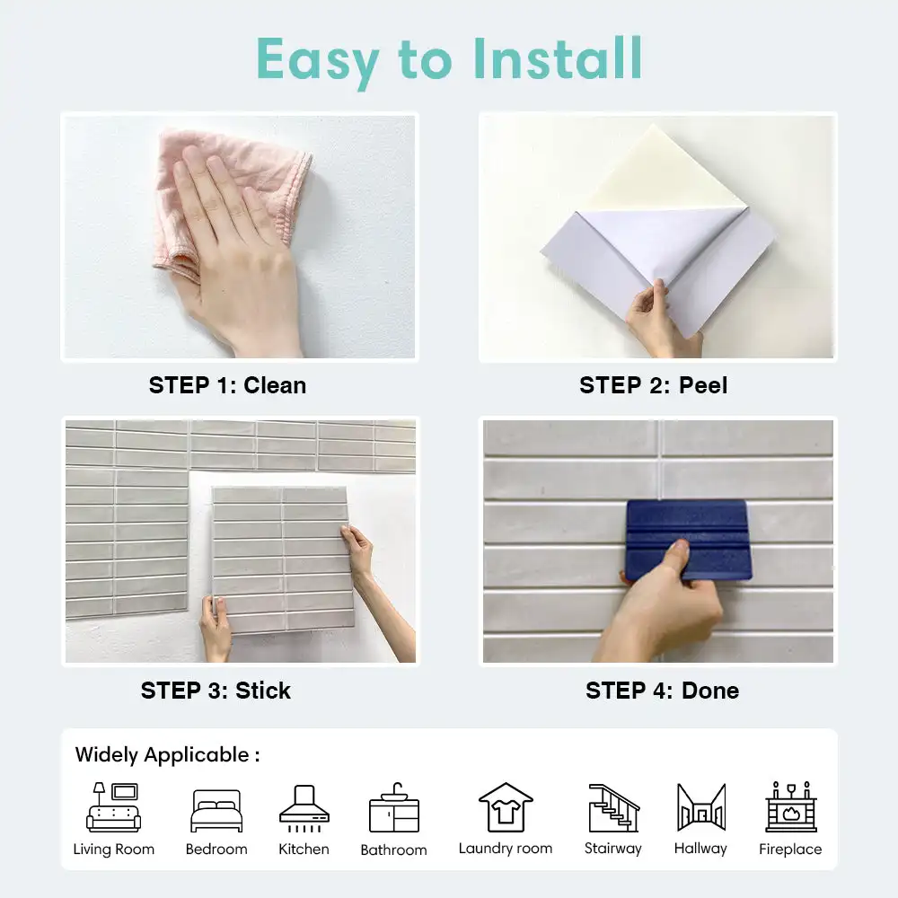 • Stunning 3D Embossed Texture: Realistic 3D surfaces perfectly simulate various real decorative tiles and are lightweight and flexible.
