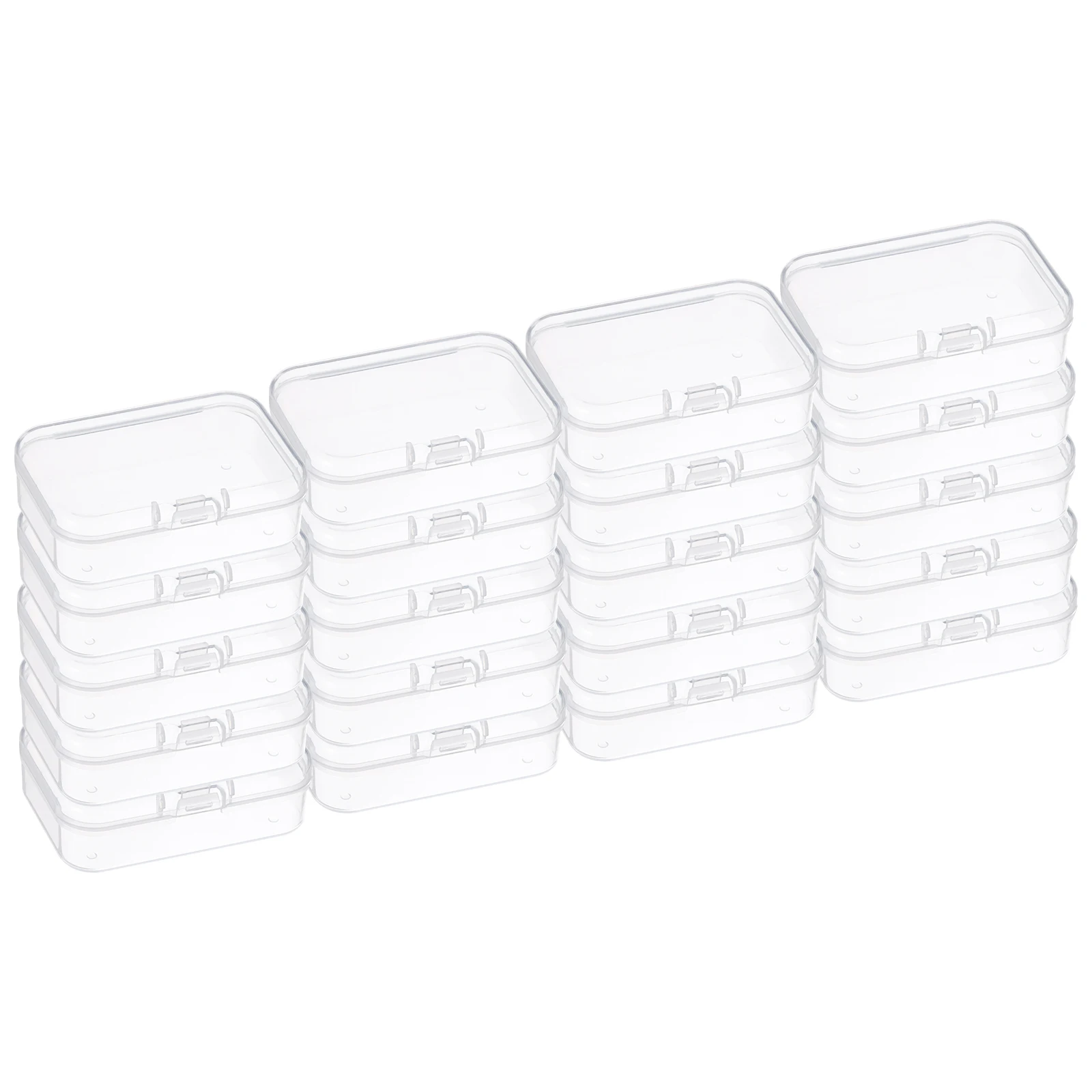 Clear Storage Box with Hinged Lid, Plastic Stackable Rectangle Organizer Container for Small Jewlery Items