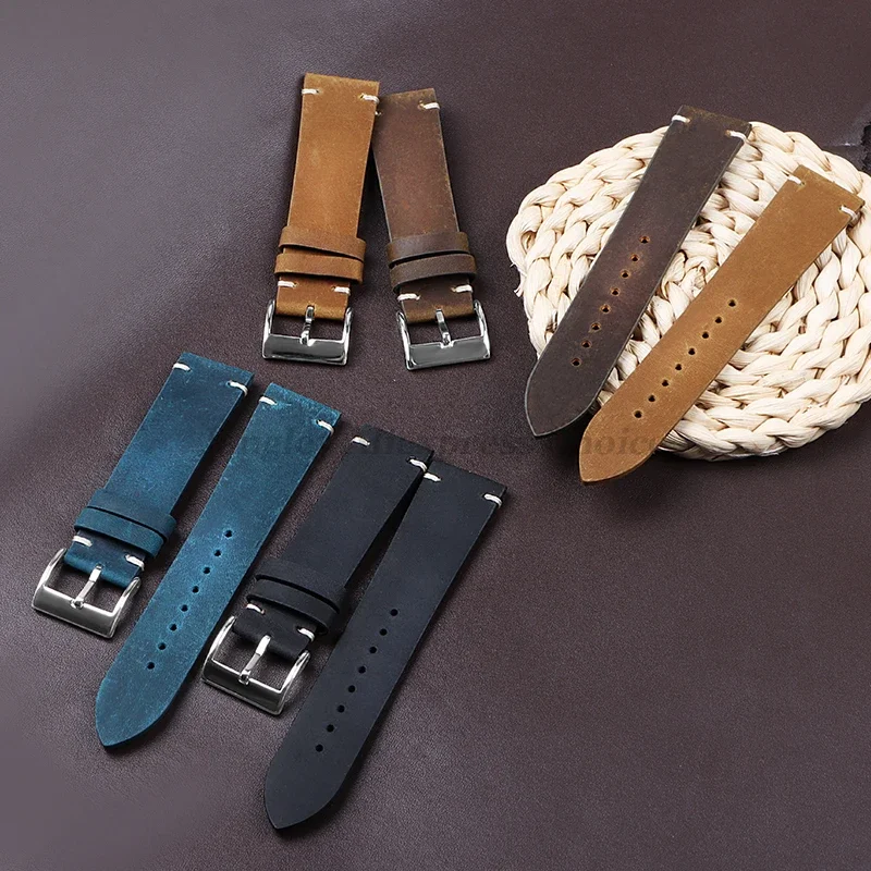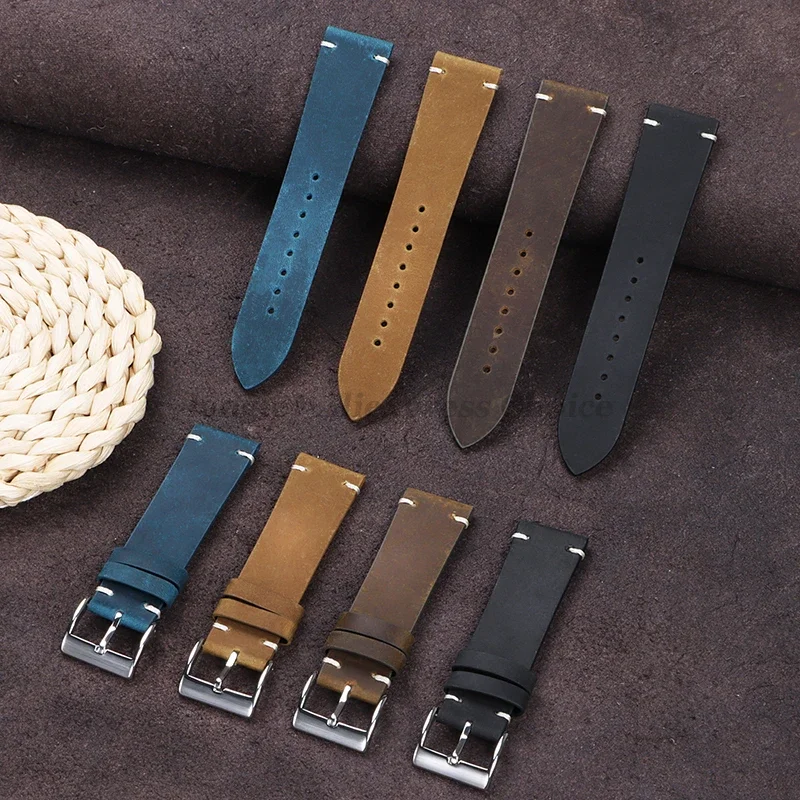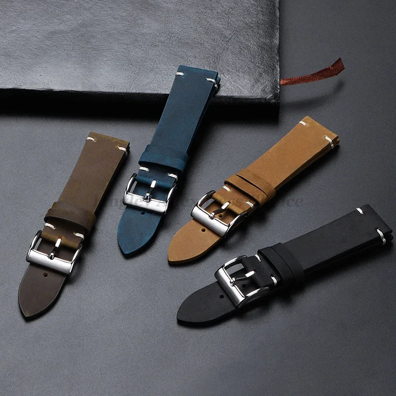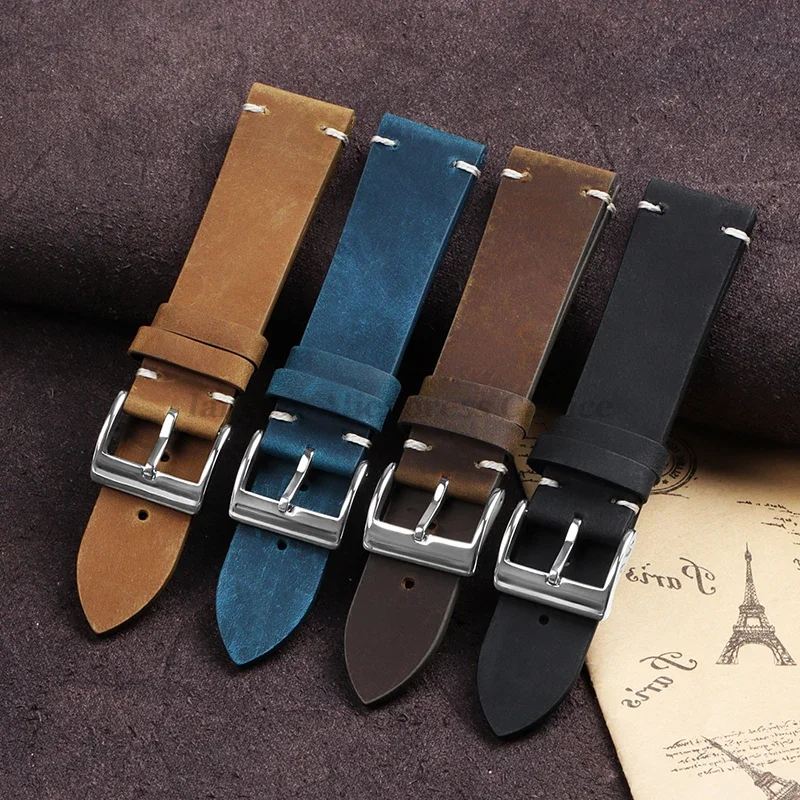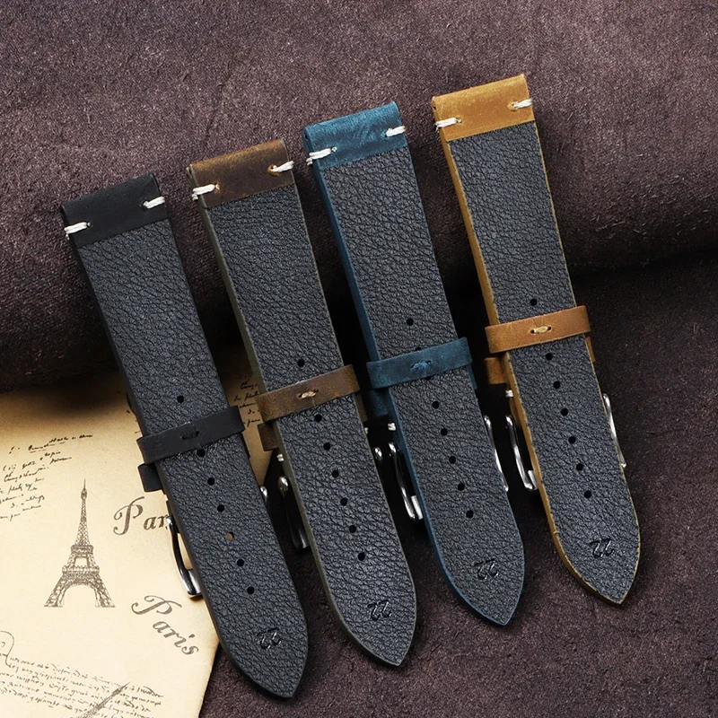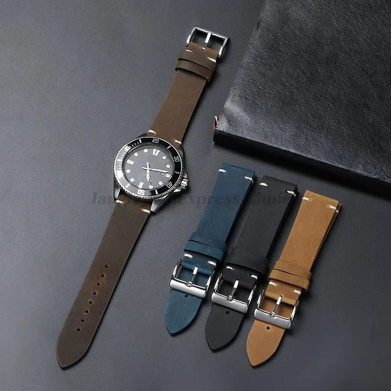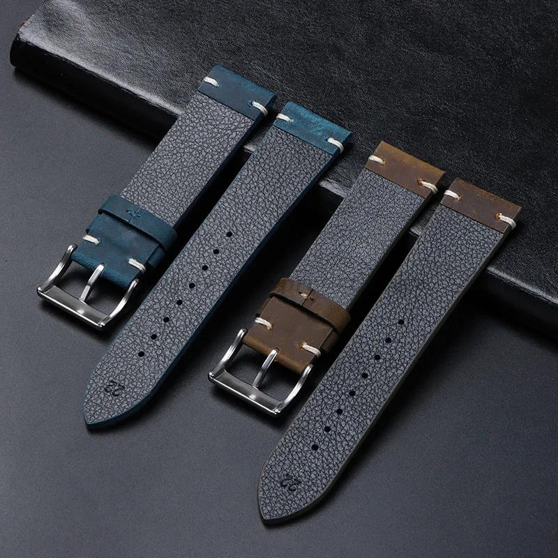 Cowhide Strap for Seiko, Omega 18mm 20mm 21mm 22mm Vintage Oil Wax Leather Handmade Stitching Wristbands
