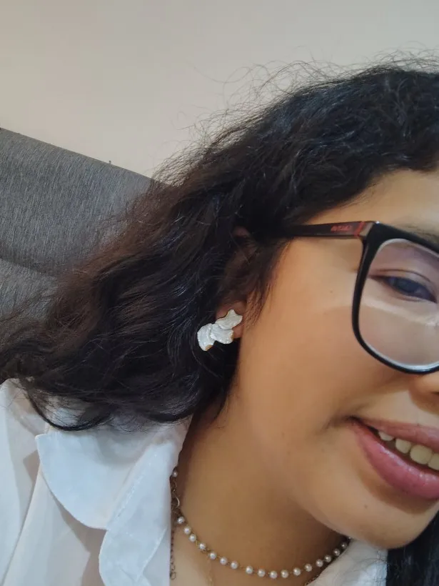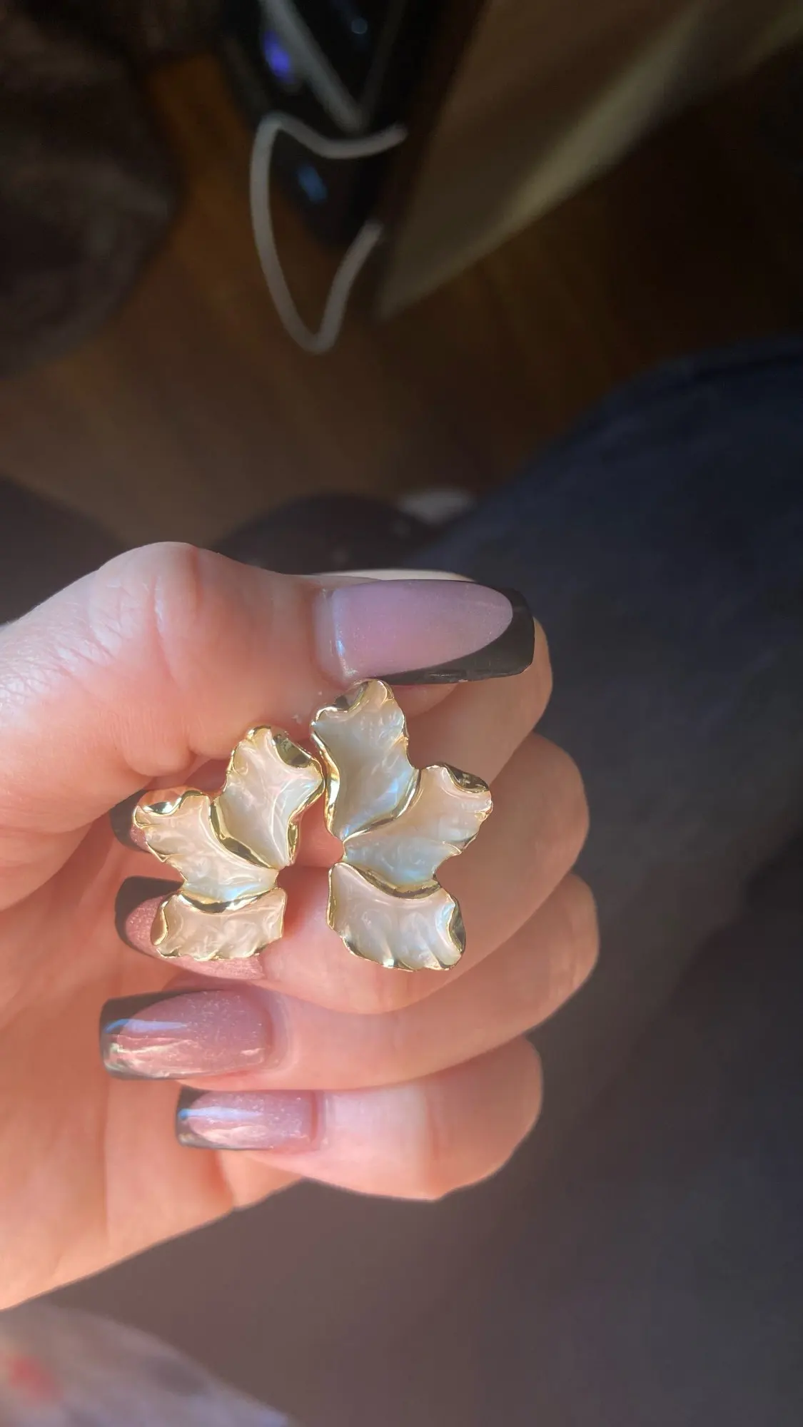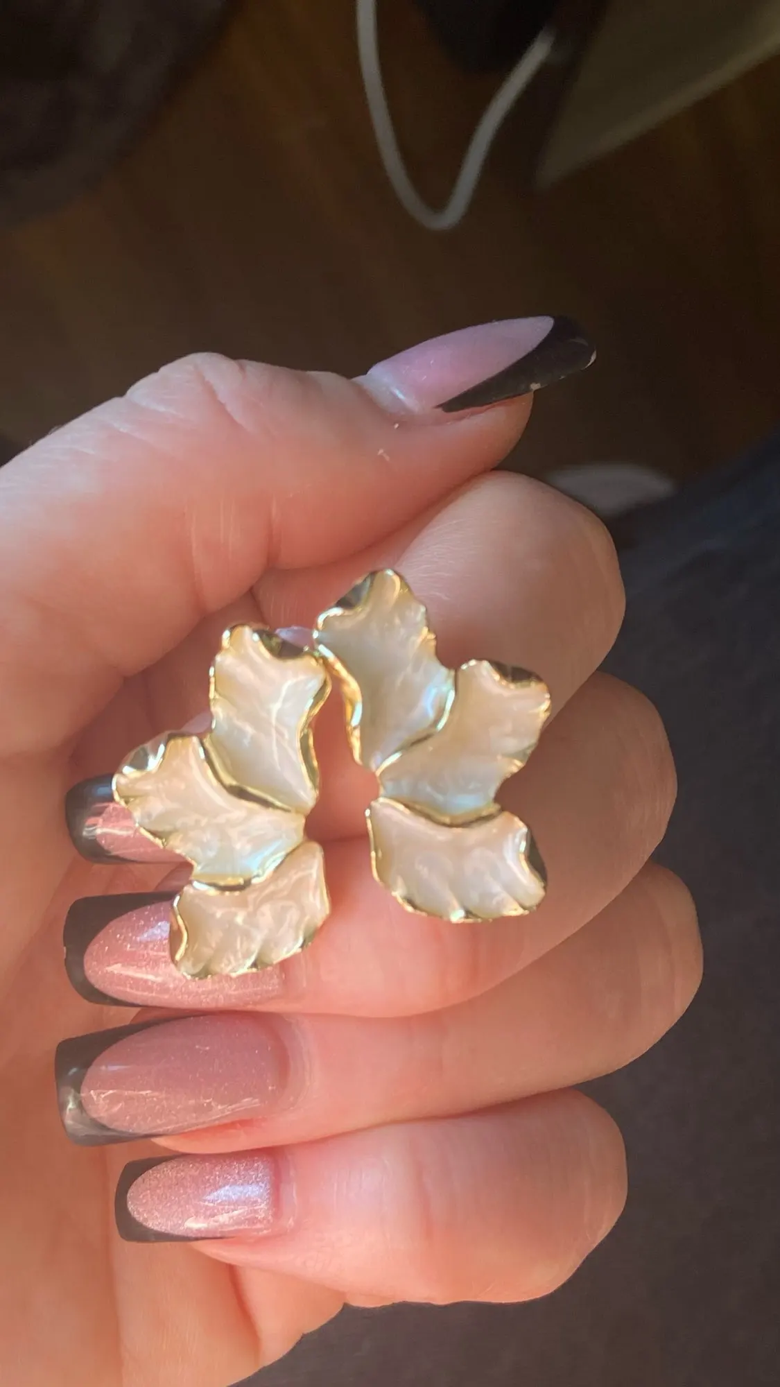 Where delicate beauty meets modern artistry. Our exquisite cream flower earrings capture the timeless elegance of a blooming petal, suspended from a lustrous gold-plated setting. Each piece features a uniquely crafted irregular back design – a subtle signature of sophistication that makes these earrings truly one-of-a-kind.