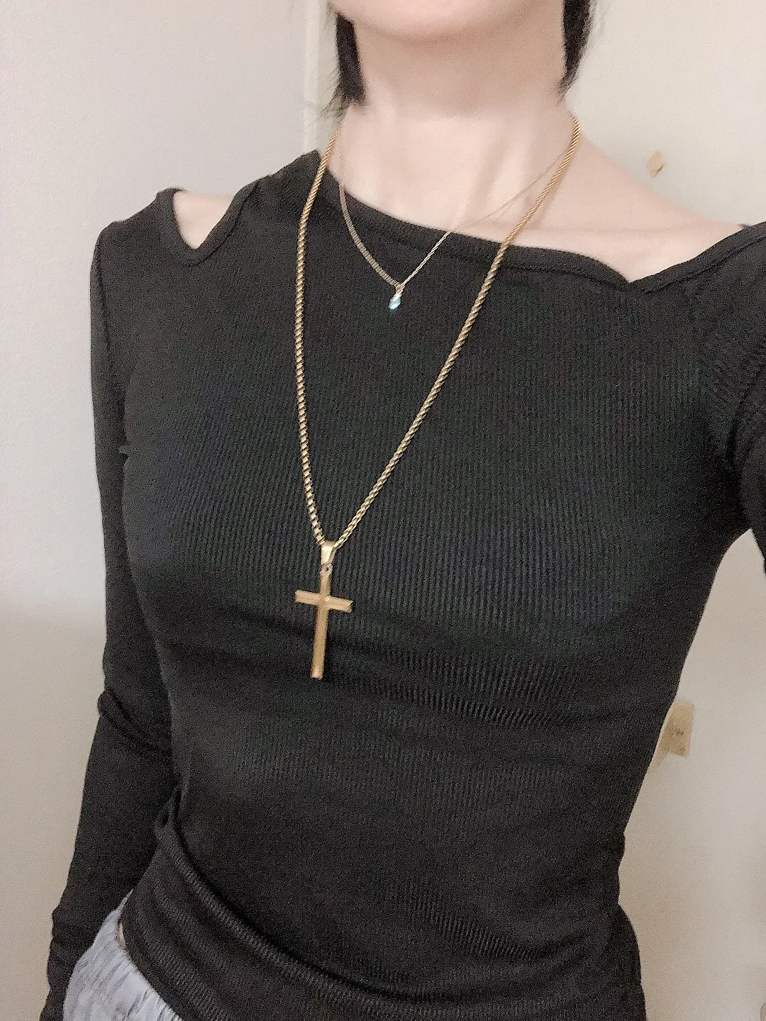 Fashion Skew Collar Off-shoulder Long-sleeved T-shirt