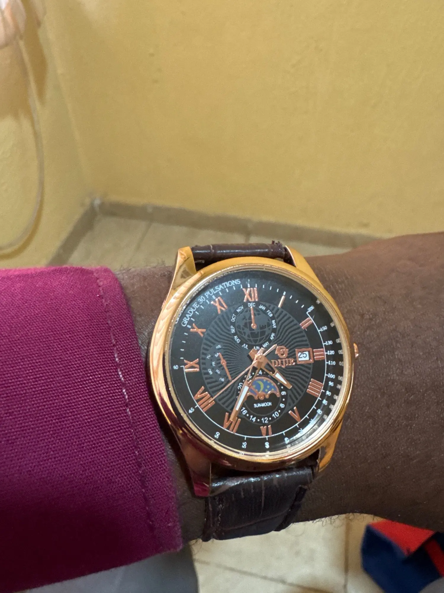 Mee Jacobi Very good, beautiful watch that meets the proposal, very elegant, I will buy again, the delivery was very fast, and it came well-packaged, congratulations.