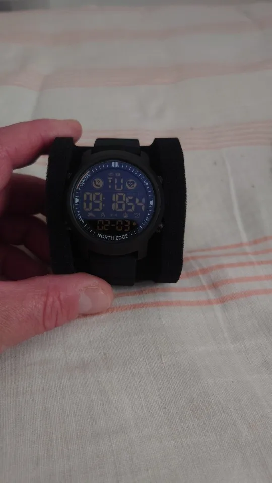 Engineered for peak performance, the NORTH EDGE Men’s Digital Sports Watch is a rugged, feature‑packed companion for military‑style training, running, and everyday adventures. With 50M waterproof rating, shock‑resistant alloy case, and a full suite of smart functions—including heart rate monitoring, step tracking, sleep analysis, and Bluetooth notifications—this watch keeps you connected and on track. It's clear digital display, silicone sport band, and durable Hardlex crystal make it ready for any challenge.