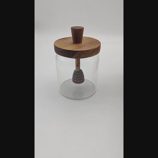 GLASS HONEY JAR WITH WOODEN LID & MIXING ROD