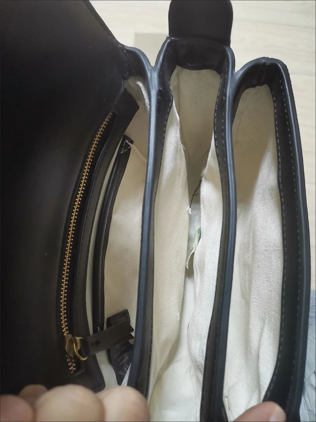 Features a neat polyester lining that keeps belongings organized while maintaining the bag’s sleek structure.